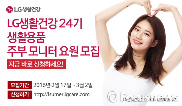 (서울=포커스뉴스) LG생활건강은 생활용품 브랜드의 신제품 제안 및 평가에 참여할 '주부모니터 요원'을 모집한다.