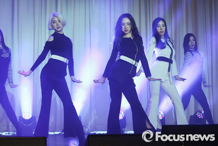 (서울=포커스뉴스) 24일 오전 서울 강남구 리버사이드 호텔에서 열린 걸그룹 레이디스 코드의 싱글앨범 '미스터리'(MYST3RY) 발표 쇼케이스에 참석한 멤버들이 신곡무대를 선보이고 있다.