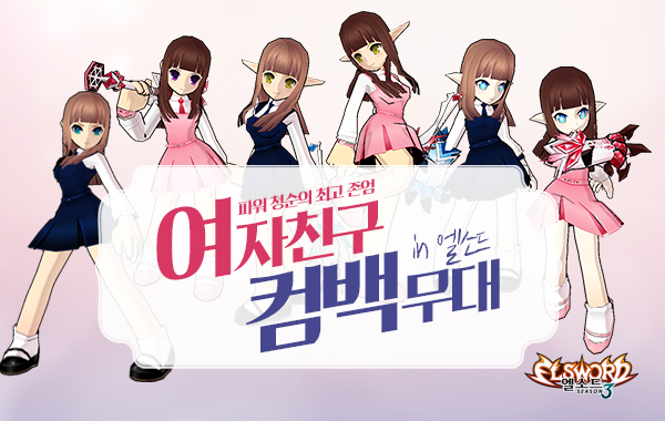 (서울=포커스뉴스) 넥슨(대표 박지원)은 25일 자사가 서비스하는 스타일리시 액션 온라인게임 '엘소드'(Elsword)에 인기 걸그룹 여자친구 아바타를 신규 출시했다.
