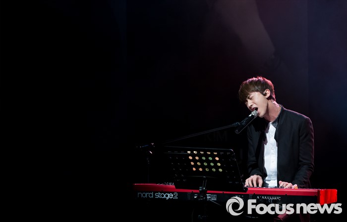 (서울=포커스뉴스) 29일 오후 서울 강남구 일지아트홀에서 신인 보이그룹 크나큰의 멤버 정인성이 데뷔 쇼케이스에서 열창을 하고 있다.