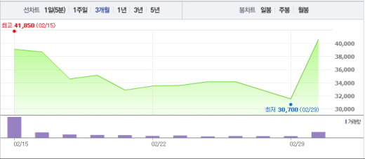 한 매체의 보도에 따르면 안트로젠은 초기 기술료로 100만달러(약 12억원)를 받는 기술 수출 계약을 체결한 것으로 알려졌다.주가흐름<사진출처=네이버 캡쳐>