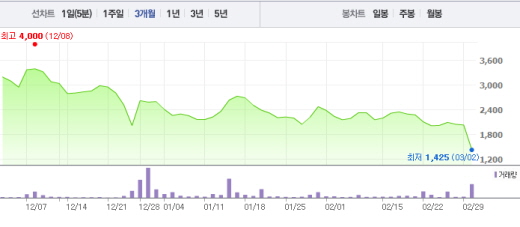 이에 플렉스컴 일부 주주들은 하경태 플렉스컴 대표와 박동혁 경영지배인을 대상으로 자본시장법위반(부정거래행위), 업무상 횡령, 업무상 배임 등으로 수원지방검찰청 성남지청에 고발장을 접수했다.플렉스컴 주가흐름<사진출처=네이버 캡쳐>