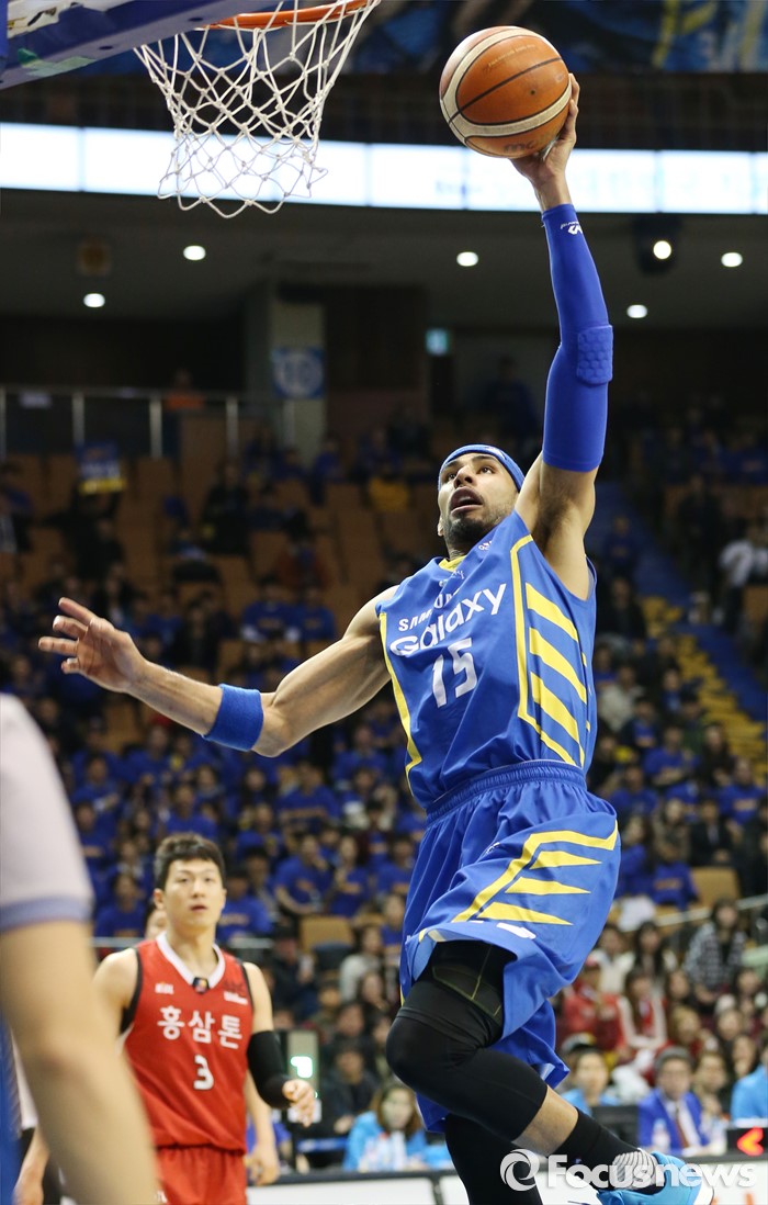 (서울=포커스뉴스) 2일 서울 잠실실내체육관에서 열린 2015-2016 프로농구 삼성-KGC 6강플레이오프 4차전에서 삼성 문태영이 원핸드 덩크를 시도하고 있다.
