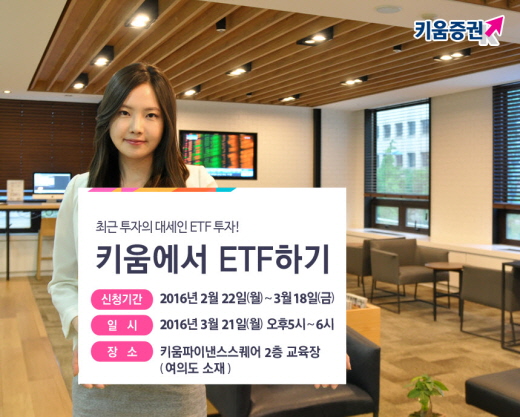 (서울=포커스뉴스) 키움증권은 오는 3월 21일 여의도 키움파이낸스빌딩 2층 교육장에서 일반투자자를 대상으로 ‘키움에서 ETF하기’ 설명회를 개최한다고 3일 밝혔다.
