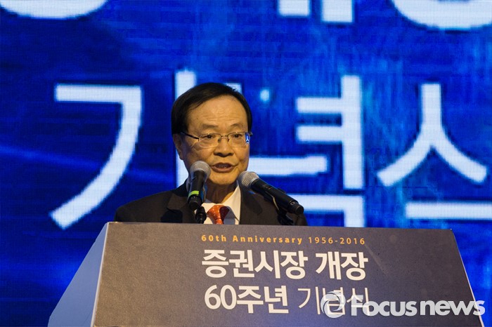 (서울=포커스뉴스) 최경수 한국거래소 이사장이 3일 오후 서울 영등포구 63빌딩에서 열린 증권시장 개장 60주년 기념식에서 기념사를 하고 있다. 이번 행사는 지난 1956년 3월 3일 대한증권거래소의 출범과 함께 문을 연 한국 증시의 60년 발자취를 기념하기 위해 마련됐다.