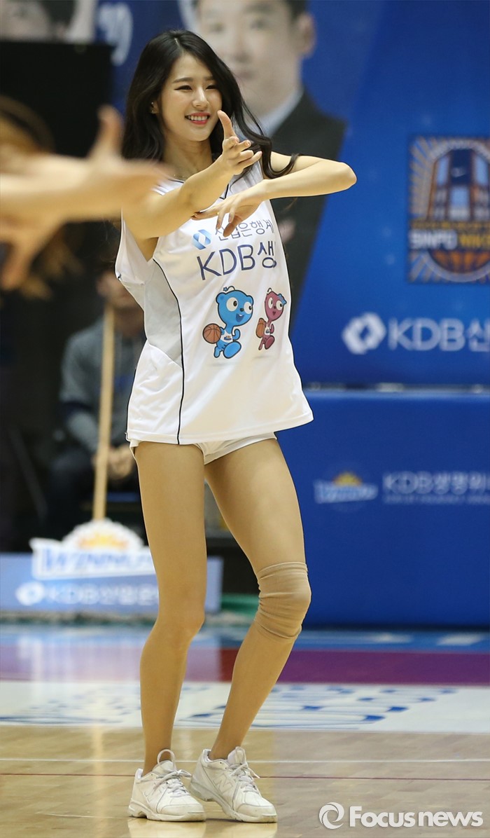 (구리=포커스뉴스) 3일 구리시체육관에서 열린 2015~2016 여자프로농구 KDB생명- KEB하나 경기에서 KDB생명 치어리더 박기량이 흥겨운 춤으로 경기장의 열기를 고조시키고 있다.