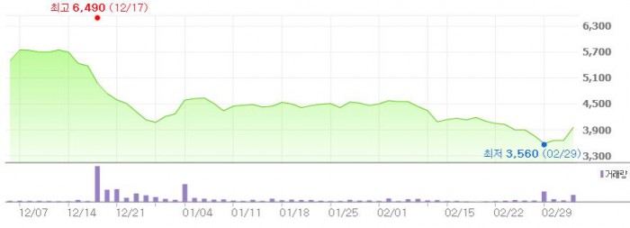 심천 518 애니메이션은 만화, 애니메이션, 게임 등 만화 관련 기업체들을 다수 보유하고 있는 심천창의투자집단 산하의 만화 콘텐츠 창작 개발 전문기업이다.최근 3개월간 미스터블루 주가 추이 <그래픽출처=네이버>