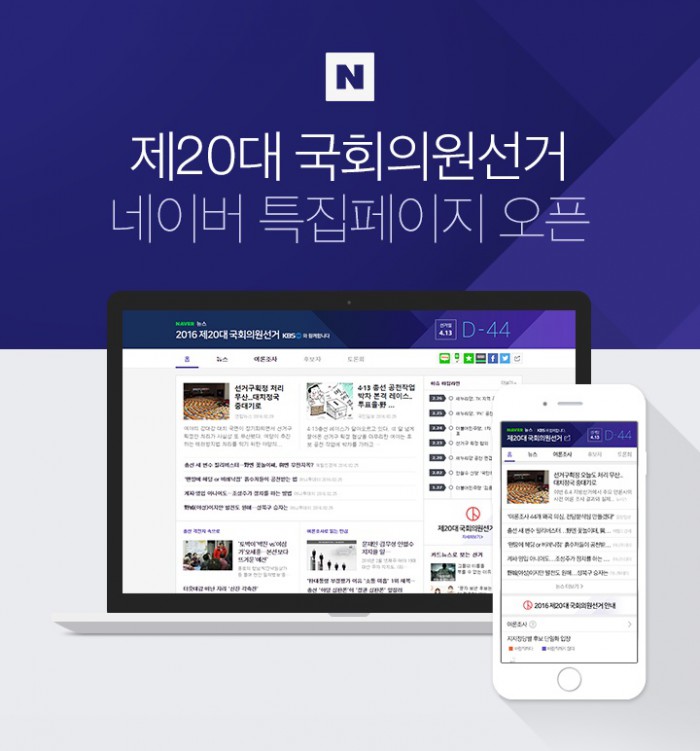 (서울=포커스뉴스) 네이버(대표이사 사장 김상헌)는 유권자들에게 신속하고 정확한 정보를 제공하기 위해 '제20대 국회의원 선거' 특집 페이지를 오픈했다고 4일 밝혔다.