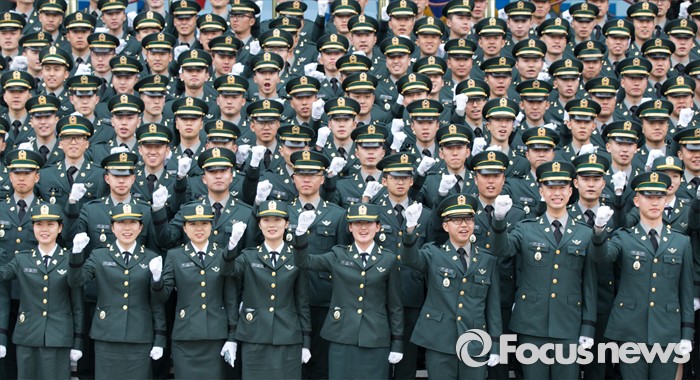 (계룡=포커스뉴스) 4일 오전 충남 계룡대 연병장에서 열린 2016년 장교 합동임관식 리허설에서 신임장교들이 기념촬영 예행연습을 하고 있다.