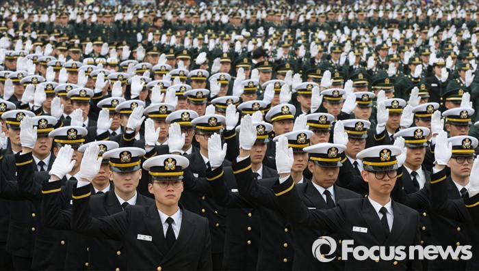 (계룡=포커스뉴스) 4일 오후 충남 계룡대 연병장에서 열린 2016년 장교 합동임관식에서 신임장교들이 선서를 하고 있다.
