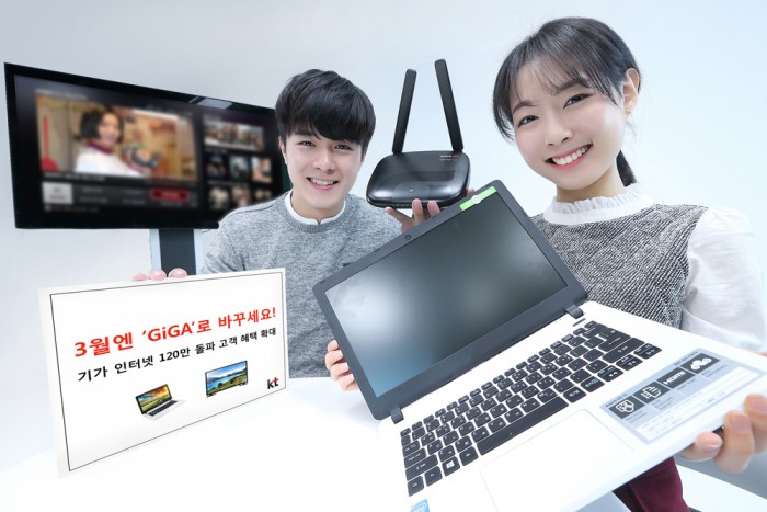 우선 기가 인터넷(1Gbps)을 가입한 고객에게 월 3000원의 인터넷 이용 요금 할인을 제공하고, '기가 와이파이 홈' 상품을 3년간 임대료(3년 약정 기준 월 3000원) 없이 무료 제공한다. 또한 기가 인터넷(기가 인터넷 콤팩트 포함)과 UHD tv(olleh tv 포함)를 동시에 신규 가입하는 고객을 대상으로 최신 기가 노트북이나 브랜드TV를 파격적인 가격으로 제공한다.
