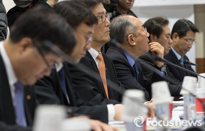 (서울=포커스뉴스) 7일 오전 서울 중구 금융위원회 대회의실에서 열린 제2차 금융공공기관장 간담회에 참석한 금융공공기관장들이 임종룡 금융위원장의 모두발언을 듣고 있다.