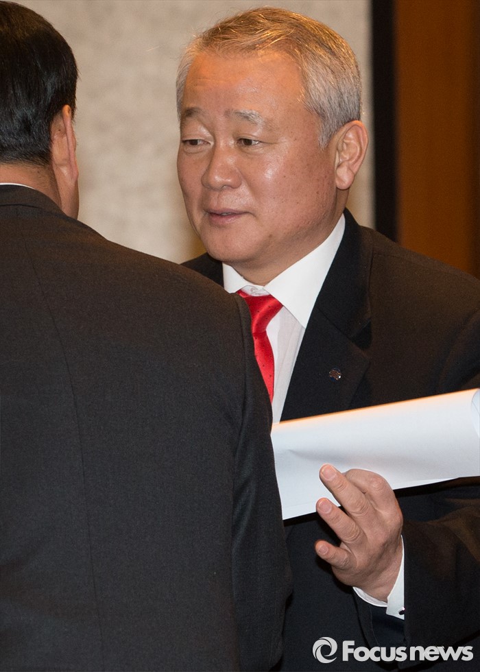 (서울=포커스뉴스) 7일 서울 중구 롯데호텔앤리조트 서울에서 열린 '대한체육회(통합체육회) 발기인 대회'에서 안양옥 체육단체 통합준비위원장이 참석자들과 인사를 나누고 있다.
