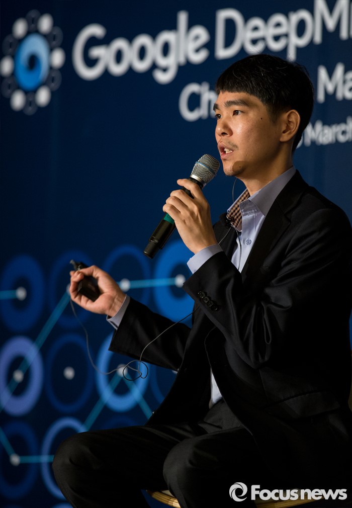 (서울=포커스뉴스) 8일 오전 서울 종로구 새문안로 포시즌스호텔에서 열린 '구글 딥마인드 챌린지 매치' 내ㆍ외신 합동 기자회견에 참석한 이세돌 9단이 취재진의 질문에 답하고 있다.