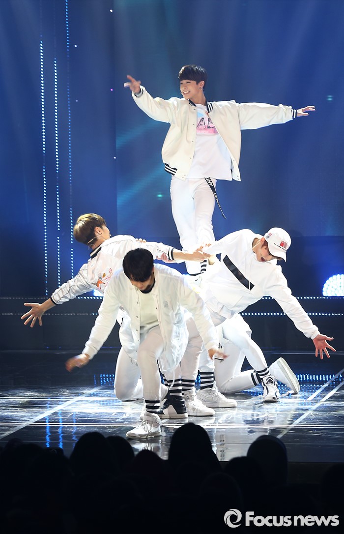 (서울=포커스뉴스) 8일 오후 서울 마포구 SBS프리즘 타워에서 열린 '2016 더쇼 62회' 생방송 촬영 현장에 아이돌 그룹 아스트로가 '숨바꼭질'의 무대를 선보이고 있다.