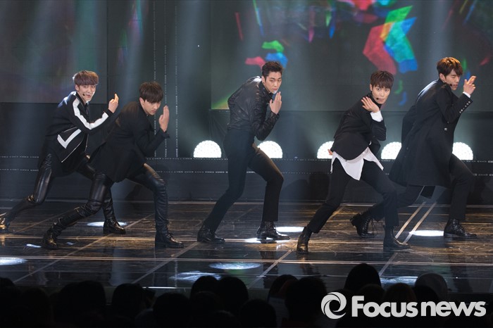 (서울=포커스뉴스) 8일 오후 서울 마포구 SBS프리즘 타워에서 열린 '2016 더쇼 62회' 생방송 촬영 현장에 아이돌 그룹 크나큰이 무대를 선보이고 있다.