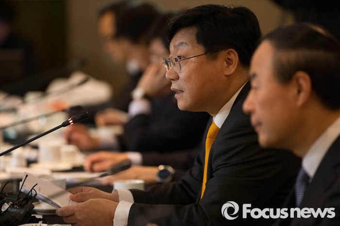 (서울=포커스뉴스) 주형환 산업통상자원부 장관이 9일 오전 서울 중구 롯데호텔에서 열린 '주요 투자기업 간담회'에서 모두발언을 하고 있다. 이날 주 장관은 30대 그룹 123조 투자계획이 차질없이 이행되도록 밀착 지원하겠다고 밝혔다.
