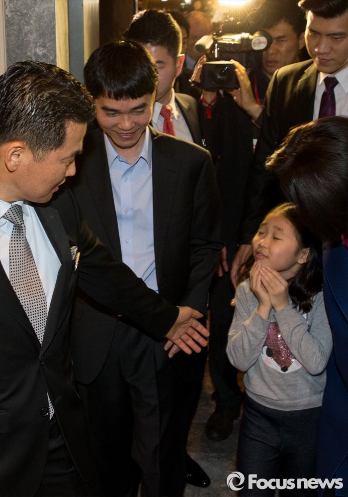 (서울=포커스뉴스) 9일 오후 서울 종로구 포시즌스 호텔에서 열린 '구글 딥마인드 챌린지 매치'에서 이세돌 9단이 딸 혜림양과 함께 대국장으로 향하고 있다.