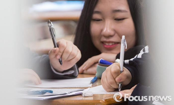 (서울=포커스뉴스) 10일 오전 서울 서대문구 명지고등학교에서 1학년 학생들이 2016학년도 첫 전국연합학력평가를 앞두고 마지막 공부를 하고 있다.
