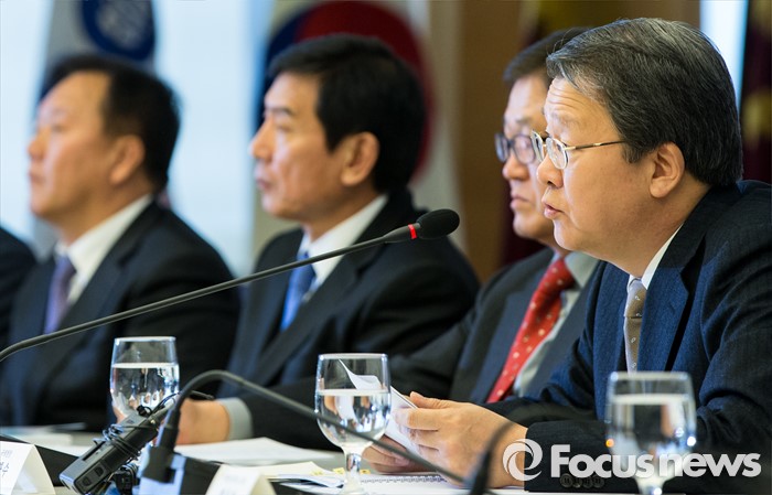 (서울=포커스뉴스) 10일 오전 서울 중구 대한상공회의소에서 열린 국세청장 초청 전국상의 회장단 정책간담회에 참석한 임환수 국세청장이 인사말을 하고 있다.