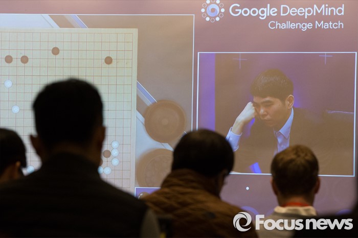 (서울=포커스뉴스) 10일 오후 서울 종로구 포시즌스호텔 기자실에서 취재진들이 이세돌 9단과 구글 인공지능 알파고의 '구글 딥마인드 챌린지 매치' 2차 대국을 지켜보고 있다.