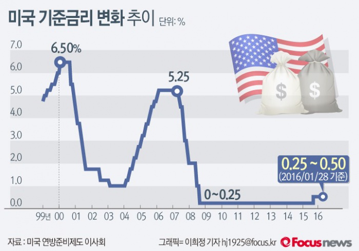 | △ [그래픽] 미국 기준금리 변화 추이 |