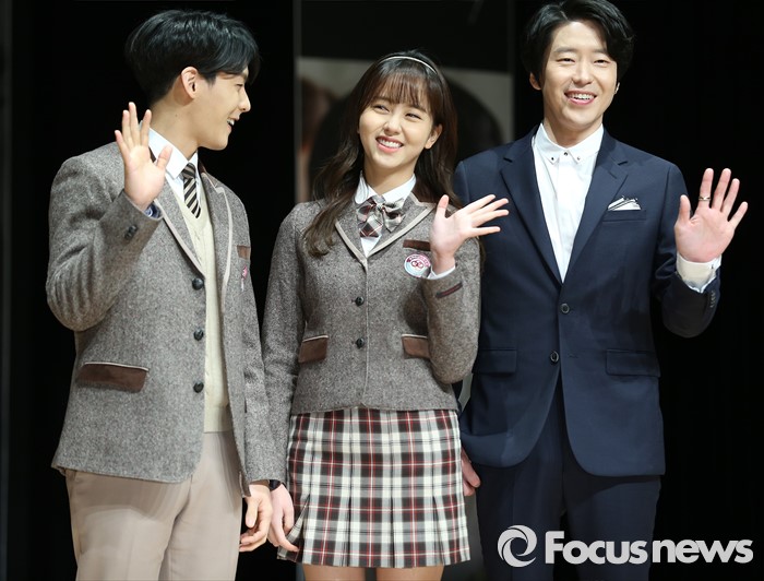 (서울=포커스뉴스) 10일 오후 서울 강남구 일지아트홀에서 열린 웹드라마 '악몽선생' 제작발표회에 참석한 배우 이민혁(왼쪽부터), 김소현, 엄기준이 포토타임을 갖고 있다.