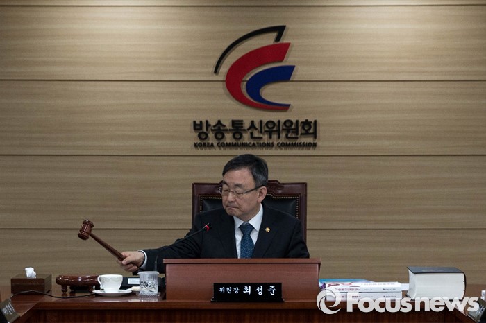 최성준 방통위원장은 “온라인에서 더 많은 위법행위가 나타나는 만큼 온라인 유통점의 지원금 과다 지급을 신경 써 달라”며 “위반 업체들이 이통 시장에서 영업을 하는 것이 적절한지 근본적인 검토도 필요하다”고 밝혔다.(과천=포커스뉴스) 4일 오전 경기도 과천시 정부과천종합청사에서 최성준 방송통신위원장이 전체회의에 참석, 의사봉을 두드리고 있다. 2016.02.04 성동훈 기자