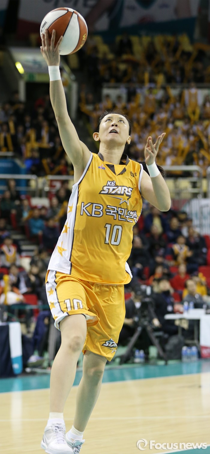 (부천=포커스뉴스) 10일 부천체육관에서 열린 2015-2016 여자프로농구 PO 1차전 KEB하나-KB스타즈 경기에서 KB스타즈 변연하가 노마크 찬스에서 레이업슛을 쏘고 있다.