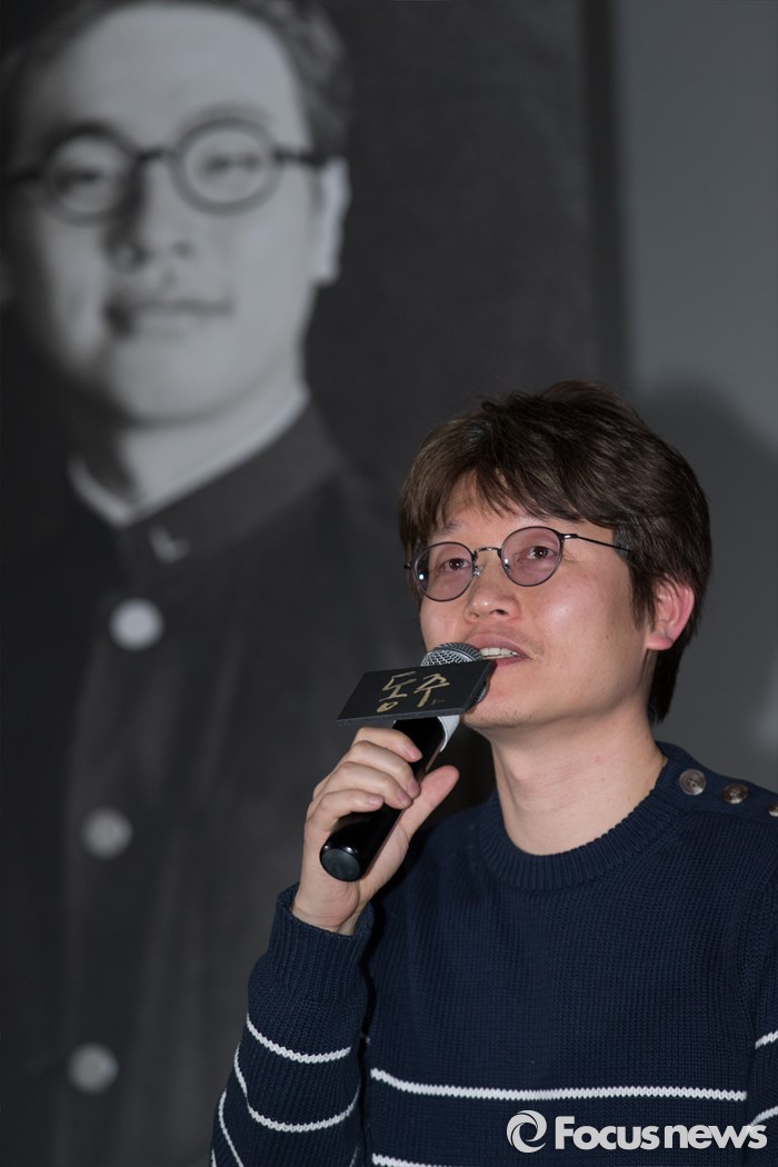 (서울=포커스뉴스) 10일 오후 서울 강남구 코엑스 메가박스에서 열린 영화 '동주'의 관객과의 대화에 참석한 신연식 각본가가 관객 질문에 답변하고 있다.