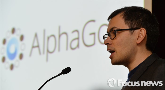 (대전=포커스뉴스) 이세돌 9단과 겨루는 인공지능 컴퓨터 알파고를 개발한 구글 딥마인드 최고경영자 데미스 하사비스가 11일 오후 대전 유성구 한국과학기술원(KAIST)에서 '인공지능과 미래' 라는 주제로 강연을 하고 있다.