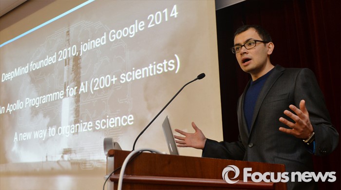 (대전=포커스뉴스) 이세돌 9단과 겨루는 인공지능 컴퓨터 알파고를 개발한 구글 딥마인드 최고경영자 데미스 하사비스가 11일 오후 대전 유성구 한국과학기술원(KAIST)에서 '인공지능과 미래' 라는 주제로 강연을 하고 있다.