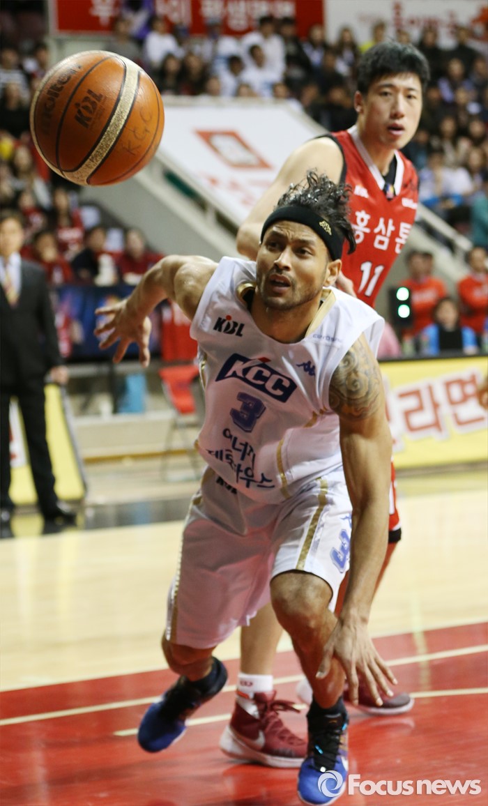 (안양=포커스뉴스) 11일 안양실내체육관에서 열린 2015-2016 프로농구 KGC-KCC 4강플레이오프 3차전에서 KCC 전태풍이 리바운드를 다투다 아웃되는 볼을 아쉬워하고 있다.