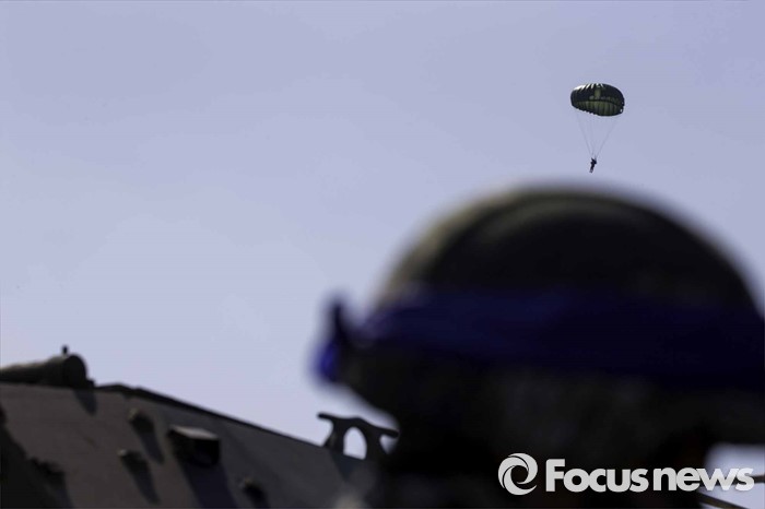 (포항=포커스뉴스) 12일 오후 경북 포항시 일대 해안에서 한미해병대의 연합상륙작전이 실시되었다. 해안가로 돌진하고 있는 상륙돌격장차들에서 일제히 연막을 전개하고 있다.
