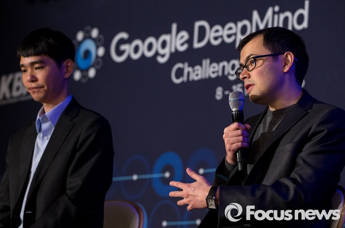 (서울=포커스뉴스) 12일 오후 서울 종로구 포시즌스호텔에서 열린 구글 딥마인드 챌린지 매치 제3국 기자회견에 참석한 데미스 하사비스 구글 딥마인드 대표가 취재진의 질문에 답하고 있다.
