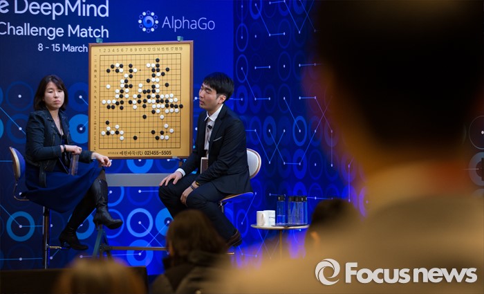 (서울=포커스뉴스) 한국 해설자들이 13일 오후 서울 종로구 포시즌스호텔에서 구글 딥마인드 챌린지 매치, 인공지능 바둑프로그램 알파고와의 네번째 대국을 해설하고 있다.