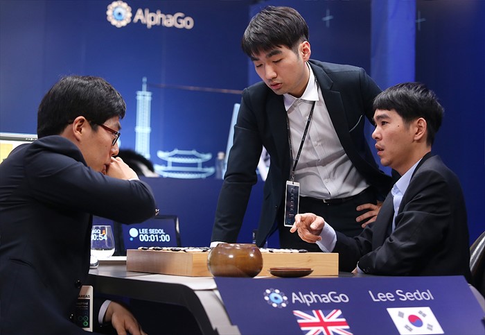 (서울=포커스뉴스) 이세돌 9단이 13일 오후 서울 종로구 포시즌스호텔에서 열린 구글 딥마인드 챌린지 매치 제4국에서 인공지능 바둑프로그램 알파고에게 첫 승리를 거두고 복기를 하고 있다. <사진제공=구글>