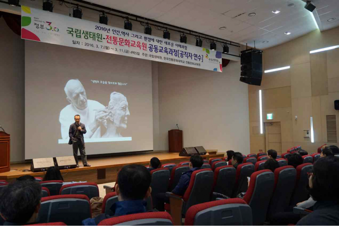 (서울=포커스뉴스) 문화재청 한국전통문화대학교 전통문화교육원과 국립생태원은 지난 7일부터 11일까지 국가‧지방자치단체 공무원 49명을 대상으로 '인간, 역사 그리고 환경에 대한 새로운 이해'를 주제로 교육을 진행했다.