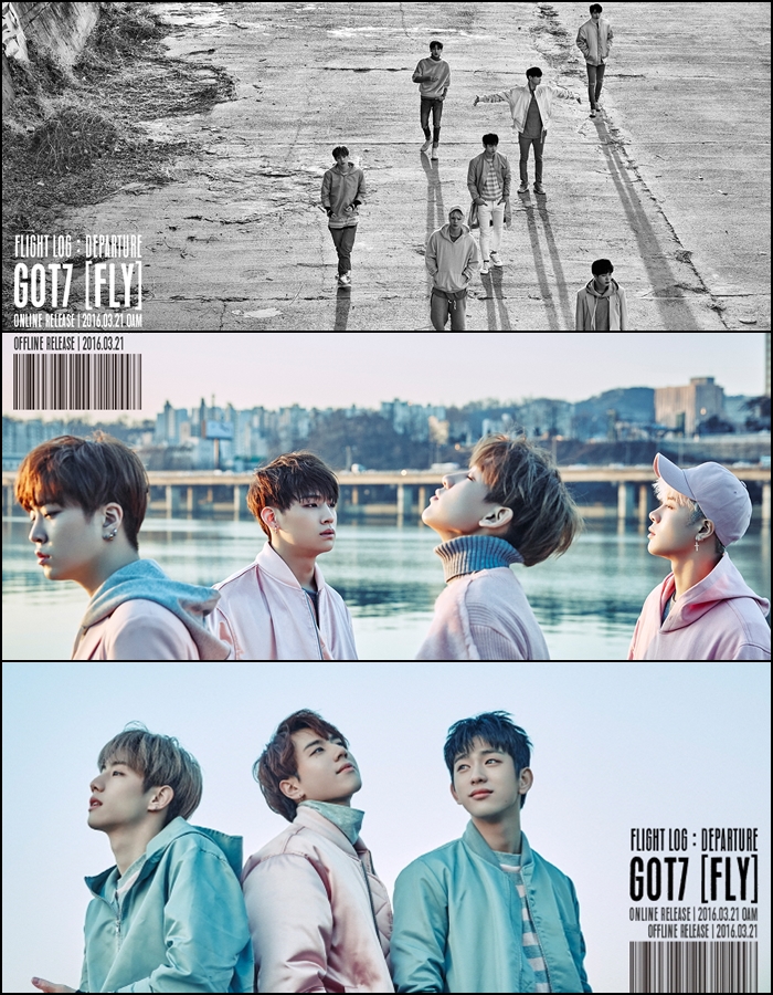 GOT7(JB·마크·잭슨·유겸·주니어·뱀뱀·영재)는 14일 0시 JYP 공식 SNS 계정을 통해 오는 21일 발매 예정인 새 미니앨범 '플라이트 로그: 디파쳐 (FLIGHT LOG : DEPARTURE)'의 콘셉트를 엿볼 수 있는 단체 사진 3장을 오픈했다.