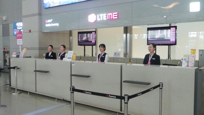 LG유플러스는 안전하고 편리한 로밍 서비스를 신속하게 안내하기 위해 대다수의 출국자가이용하는 인천국제공항 내에 가장 많은 로밍 안내데스크를 설치·운영하고 있다. 지난해 4월에는 음성 LTE 로밍 서비스를 출시했으며 6월에는 해외에서 단말을 분실하더라도 고객센터로 분실신고만 하면 음성발신 요금을 감면(30만원 초과 금액)해주는 제도를 실시했다.LG유플러스 직원들이 인천국제공항 로밍센터에서 고객들을 기다리고 있다.<사진제공=LG유플러스>