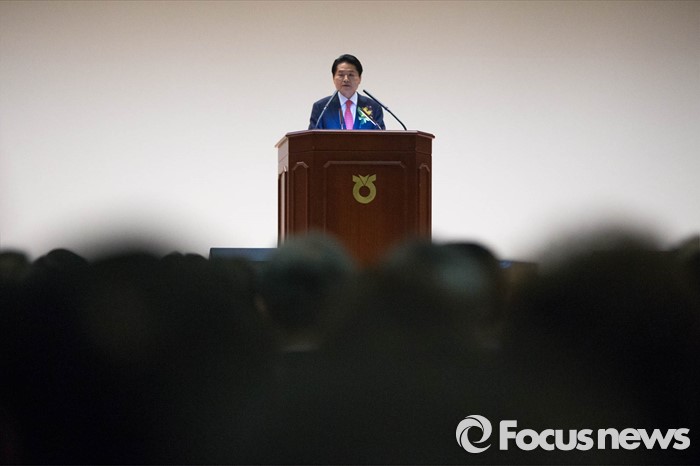(서울=포커스뉴스) 김병원 농협 신임 회장이 14일 오전 서울 중구 농협 중앙회에서 열린 신임 회장 취임식에 참석, 취임을 기념하며 인사말을 하고 있다.
