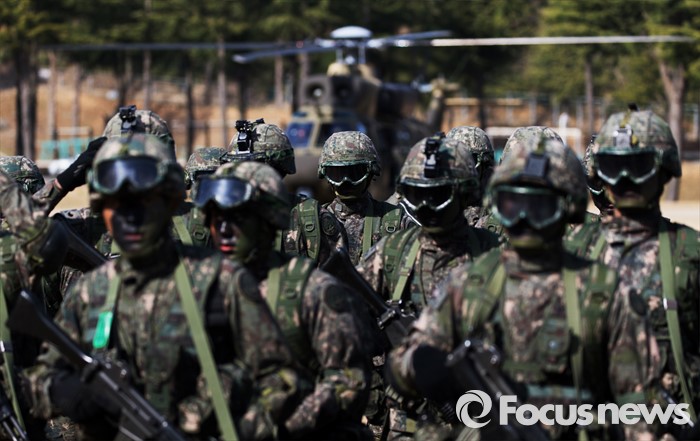 (대구=포커스뉴스) 10일 오후 제2작전사령부 예하부대에서 육군항공·특공부대 전개훈련에 참가한 201특공여단 장병들이 국산 헬기 수리온(KUH-1)을 이용해 작전지역에 침투하고 있다.