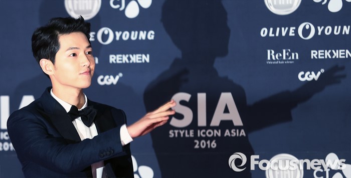 (서울=포커스뉴스) 15일 오후 서울 동대문구 동대문 디자인 플라자에서 열린 '스타일 아이콘 아시아 2016' 에 참석한 배우 송중기가 포토타임을 갖고 있다.