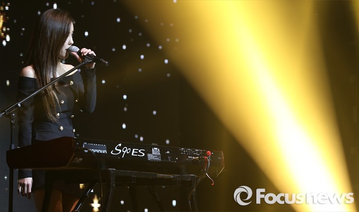 (서울=포커스뉴스) 16일 오후 서울 마포구 롯데카드 아트홀에서 가수 효민이 솔로앨범 'Sketch' 쇼케이스에 참석해 신곡 'GOLD'의 무대를 선보이고 있다.