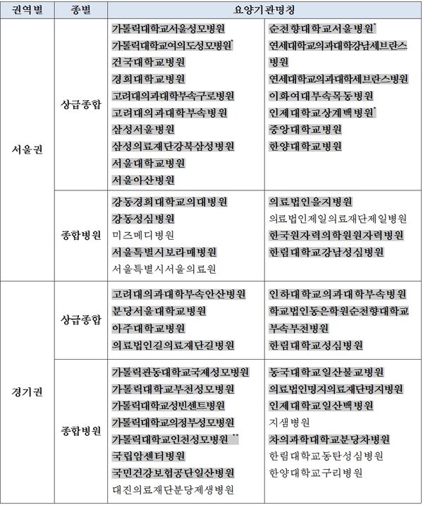 수술 후 적절한 시기에 투여해 재발방지 및 생존률을 높일 수 있도록 ‘권고된 항암화학요법을 시행’했는지에 대한 평가 결과 97.3%가 실시했으며, 1차 평가 대비 5.8%p 상승했다.서울, 경기권 1등급 기관 명단 <사진출처=건강보험심사평가원>