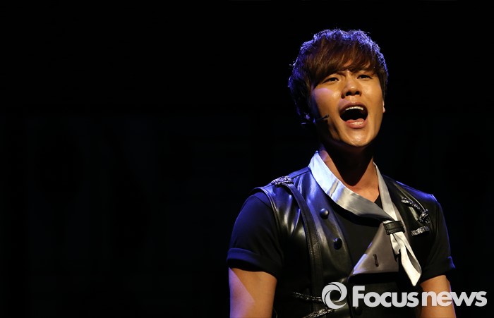 (서울=포커스뉴스) 3일 오후 서울 종로구 유니플렉스에서 열린 뮤지컬 '로멘틱 머슬' 프레스콜에 참석한 배우 이창민(왼쪽)과 유리아가 주요장면을 시연하고 있다.