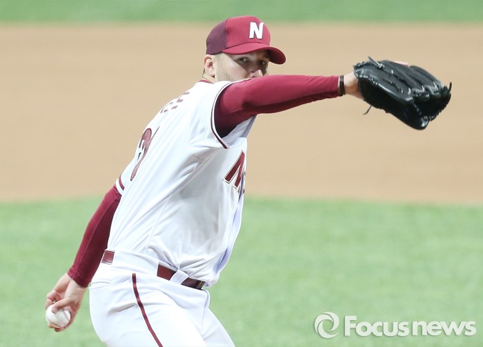 (서울=포커스뉴스) 18일 서울 고척스카이돔에서 열린 2016 프로야구 시범경기 두산-넥센 경기 1회초 넥센 선발 피어밴드가 힘차게 투구하고 있다.