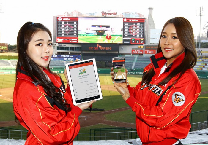 20일 SK텔레콤에 따르면 SK와이번스는 인천SK행복드림구장에 농구장 3배 크기의 세계 최대 전광판(가로약 63m, 세로 약 18m, 총면적 약 1138㎡)를 지난 겨울 설치했다. SK텔레콤은 스마트 사이니지 솔루션을 적용해 전광판과 고객 휴대폰의 SK와이번스 전용 애플리케이션 ‘플레이 위드(PLAY With)’를 연동했다.