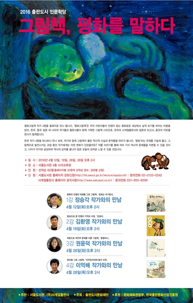 이번 행사는 평화그림책에 참여한 정승각, 김환영, 권윤덕, 이억배 등 총 4명의 한국작가들을 릴레이 형식으로 만날 예정이다.