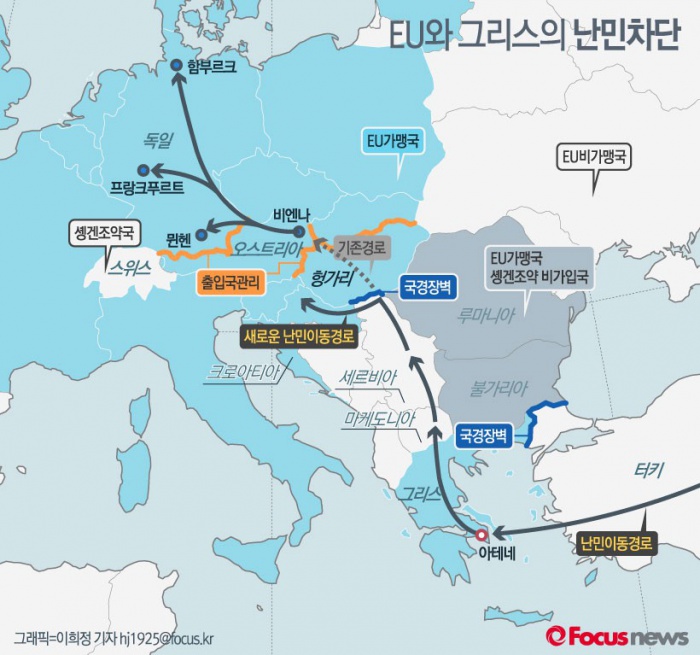 (서울=포커스뉴스) 유럽연합(EU) 국가들이 출입국관리와 국경장벽 등의 방법으로 국경통제에 나서면서 유럽행 중동 난민과 이민자들의 이동 경로가 변화하고 있다.
